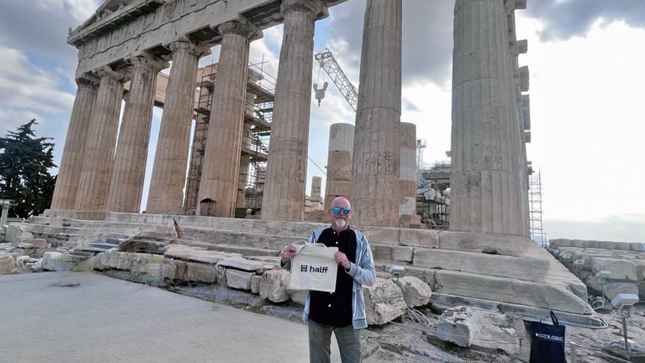Willis White visited the land of ancient myths and gods, the Acropolis in Athens, Greece. He posed with his Halff Bag in front of the Parthenon, a former temple dedicated to the goddess Athena.